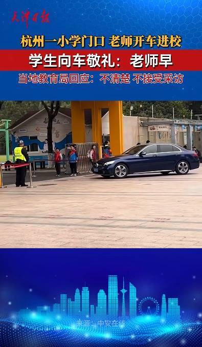 该视频拍摄于杭州市笕桥小学,视频中多辆车依次开进校门,学生们一遍遍敬礼高喊“老师早”。视频发布者配文质疑:“老师也不开窗回应?”